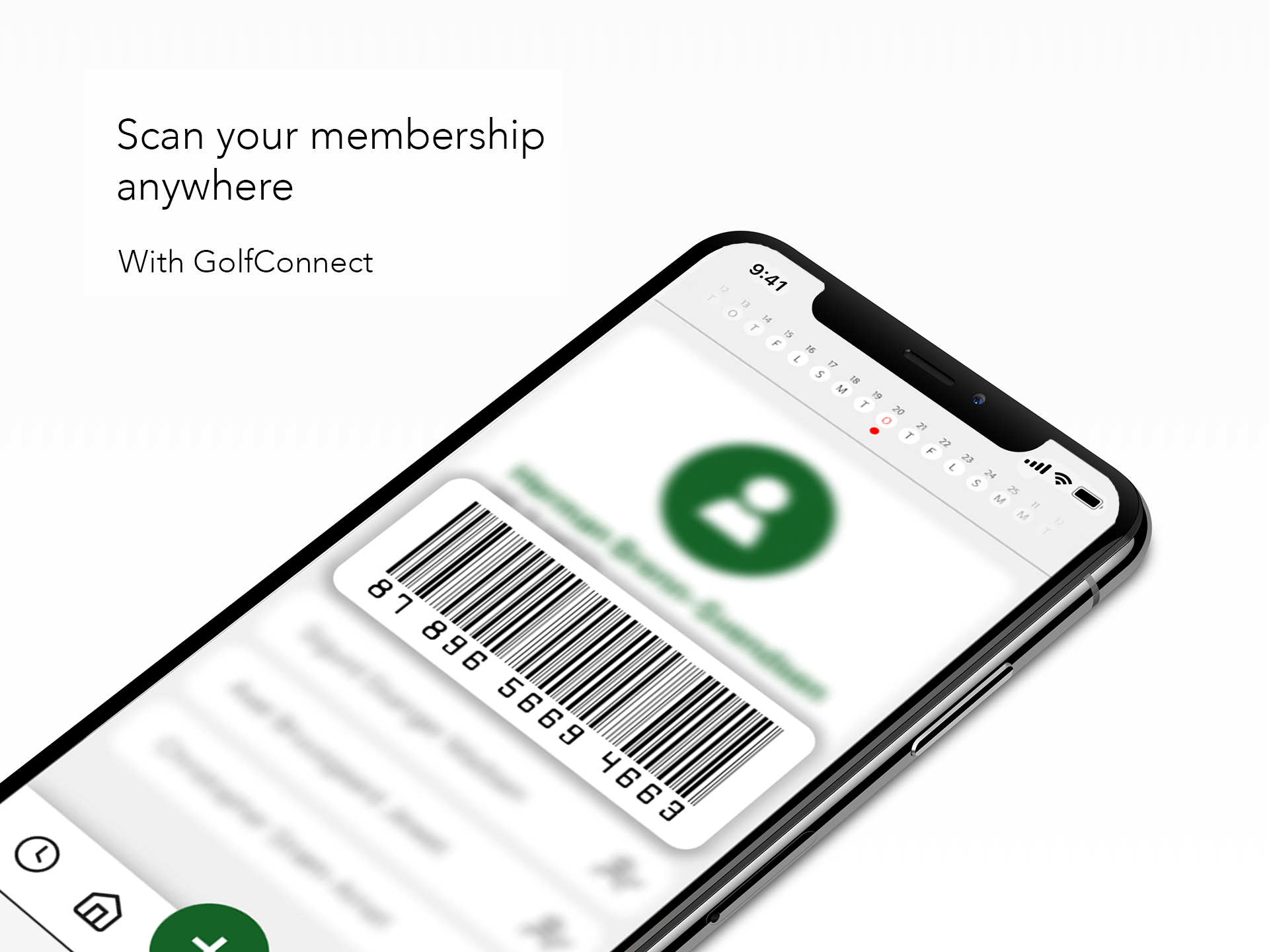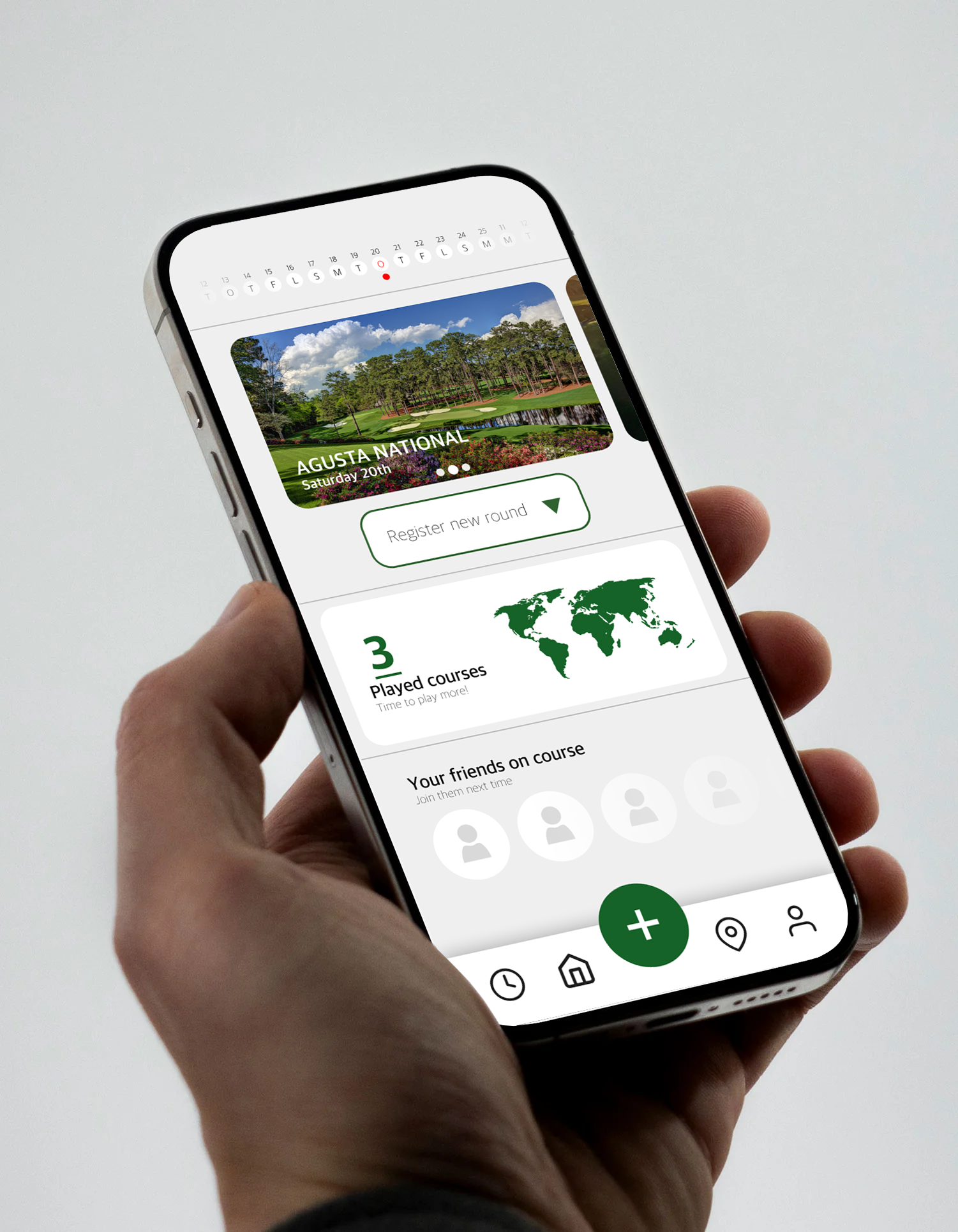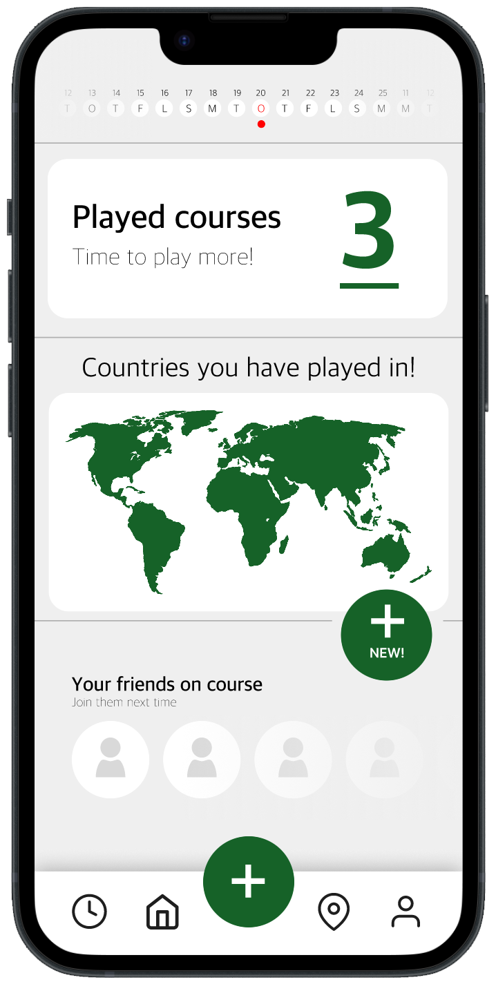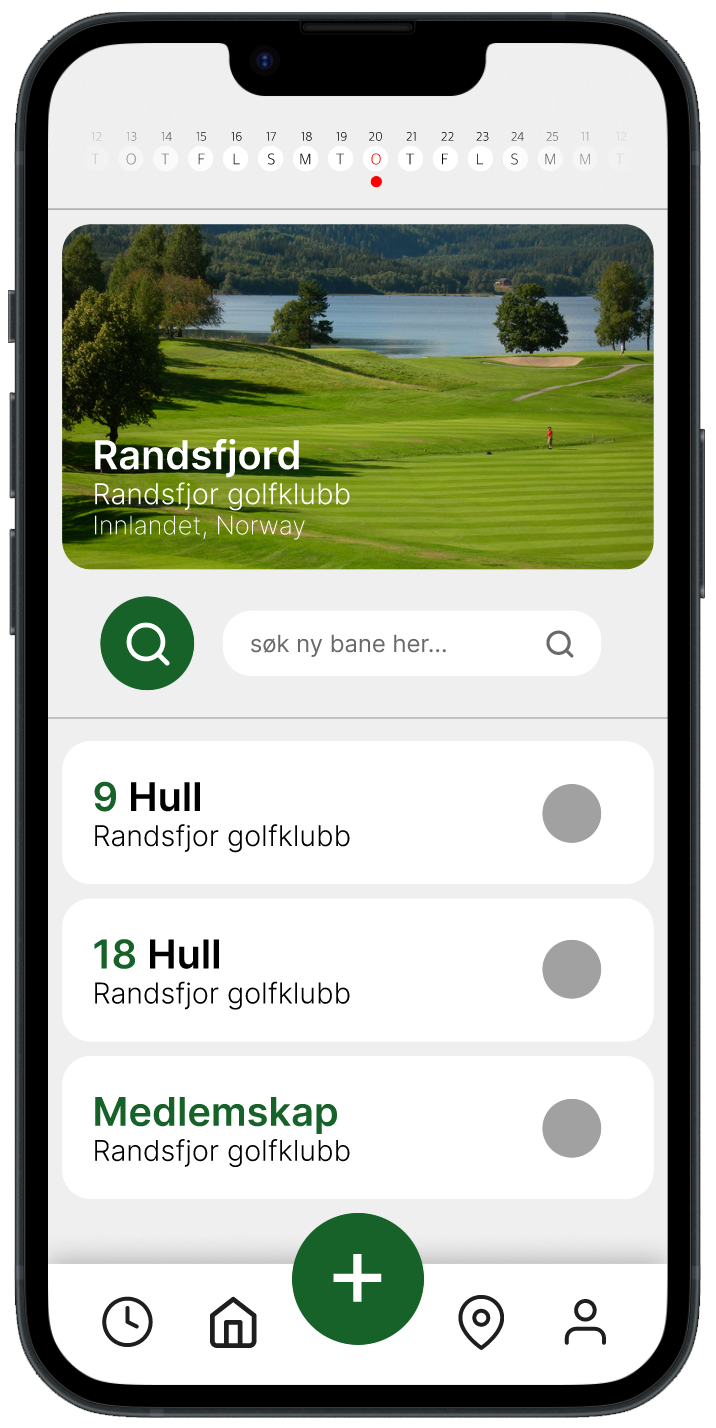 Appen horisontale scroll-vennlig kalender gir en oversiktlig måte å enkelt loggføre dine neste golfrunder på.